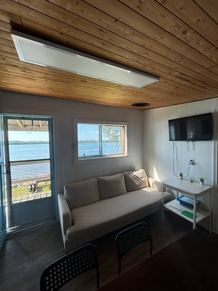 About the space This open concept cabin is located on a private lake front property perfect for short summer getaway. Sleep in and wake up on the lake. Have your coffee then plan your day full of excursions in the wonderful Bruce Peninsula Region. Fishing, Lake Skating, Canoeing, Bird Watching, and Hunting. Sky lake is a clean, freshwater lake that has excellent fishing for Bass, Perch, Pickeral, Pike. We have a boat launch on the property free to use for our guest. I’m Sky lake is known to be a warm, quiet and peaceful body of water- perfect for fishing and in the early and late parts of the day and enjoy bird watching and canoeing during the rest of the day. Canoes available for rent please check with hose in advance. As you enter the Property, the Main cottage is situated on the right side facing the cabins that is nestled between the cedar trees along the lake. As you drive along the lake on the drive path you will see cabin marked with a number. To enter into you Cabin or Cottage you will be given a code for the pin pad few days prior to your arrival. Prepare Meals and build memories. You have your own private open concept kitchen, with the view of the lake. Prepare meal easily with a fully equipped kitchen that contains all the essentials, including microwave, and stove / oven. Living room is petite but quant. Dining table, smart TV with wifi. Please take time to read the Bedding and sleeping arrangement details that way you can better plan your sleeping and bringing your own bed sheets. Our 8 waterfront cabins are situated comfortably along Sky Lake. Onsite we have fireplace, Private BBQ and deck for your enjoyment. This is a private property with Private Lake and access to water right at your doorsteps. Because of this Cabin being so close to water, ( 4 meters to the shore line) we are not permitted to have gray water service inside, as a result, we have central washrooms for your use, free hot shower and portable water supply if needed few short walk away. Please remember to also bring your own bedding, pillows and linens are not provided. If you are looking for a smart, quick and family friendly Ontario escape, then this cabin is perfect. Popular and well known destinations in the area are: You will be in the middle of your relaxation with great daily excursions. The Cabin is a lakefront property nestled in the Great Sky Lake, Ontario. Time to make memories with Family and Friends. Beach and water access right in front of your doorsteps, or drive 10 min to a larger beach on Red Bay beach on Lake Huron with soft sandy beach and amazing sunsets. What to expect on your arrival: 1-We provide a water tub for the kitchen sink, and it’s a self-fill set up. The water is a Well water filtered and sanitized and is drinkable, however we always recommend to bring own drinking water. 2- Outside we have a BBQ private for your use only, filled propane and utensils. The deck and porch all have lake view and with the picnic table. Enjoy the mornings sipping coffee a listening to the sounds of morning birds, and mist on the lake before the wildlife wakes and the day begins full of excursions and the great Northers Ontario day trips. 3- The AC is window AC and We have space heaters should you require. 4- The fire pits are located in and around the property. Just pic one and enjoy the night with family and friends. 5-The Cabins have situated in and around Cedar Trees, with large access to boat launches and scenic walking trials. 6-Please bring with you fitted Bed sheets and Pillows and blankets for your sleeping arrangements. 7- Boat launch is free for guests. We also have Canoe rentals for a fee of $30 per day. Please make sure to ask in advance of your check in date for canoe available. The Rental starts at 6AM to 8PM. 8- Upon your arrival, we will provide you with an literary of places to do excursions in order to have an optimal trip. Everything from Canoeing, to hiking, to biking, to diving, cliff jumping or just relaxing on the beach or by the fire. This is an itemized personal diary for you to read, plan and enjoy, No additional planning needed in advance of your trip, we can provide you places to see and things to do. PS> please check fairy schedules on your own.